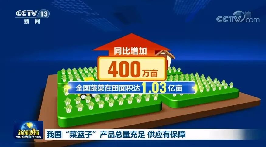 农业农村部最新发布,当前,全国“菜篮子”产品总量充足,供应有保障。全国蔬菜在田面积达1.03亿亩,预计现在到明年春节前后,蔬菜供应量将达2亿吨,同比增加700万吨。