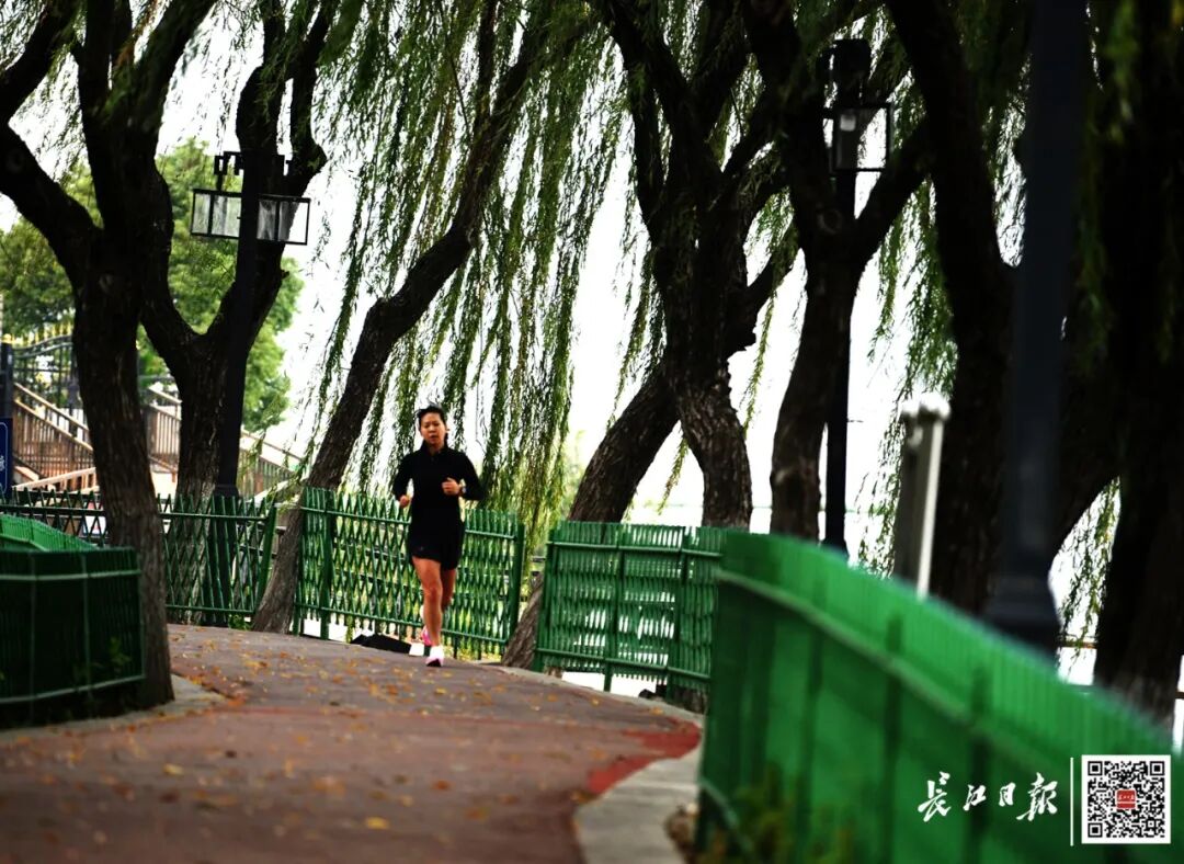 21日早晨,金银湖国家城市湿地公园,晨跑的市民不惧寒冷。记者金振强 摄