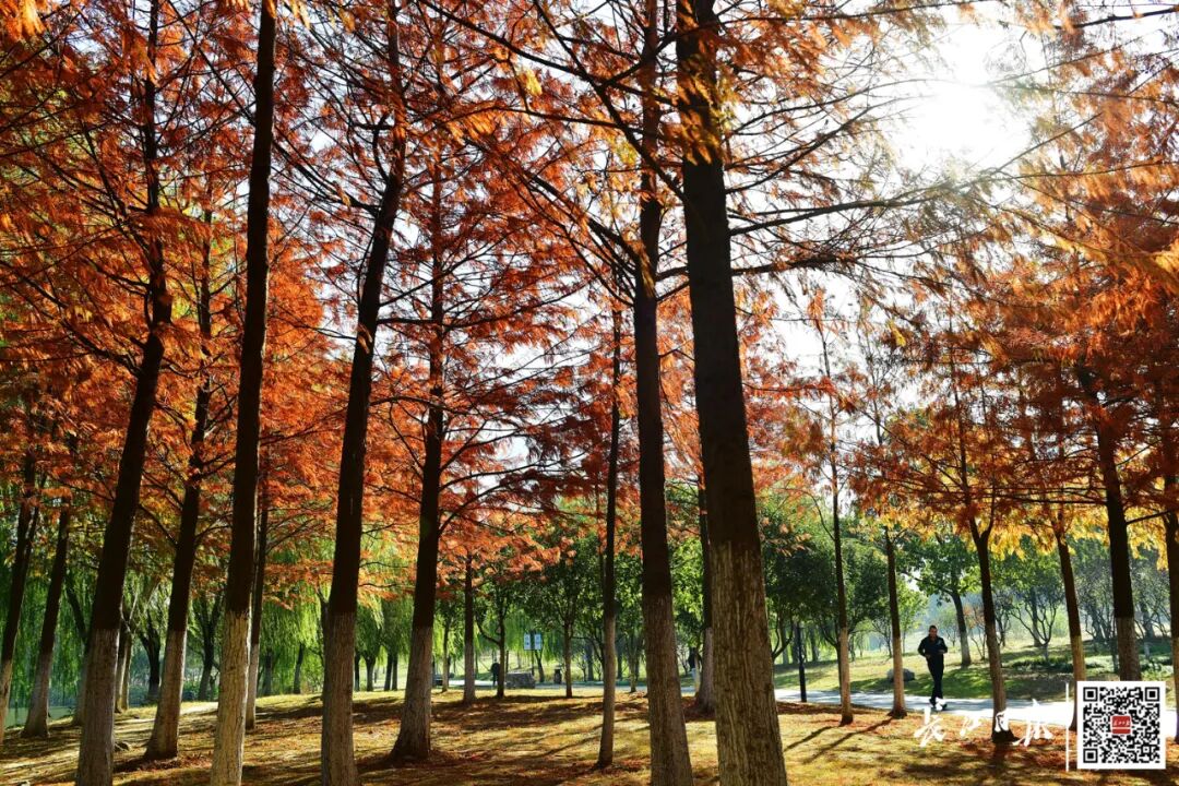 沙湖公园C区,成片的落羽杉开始染上了红棕色。记者李永刚 摄