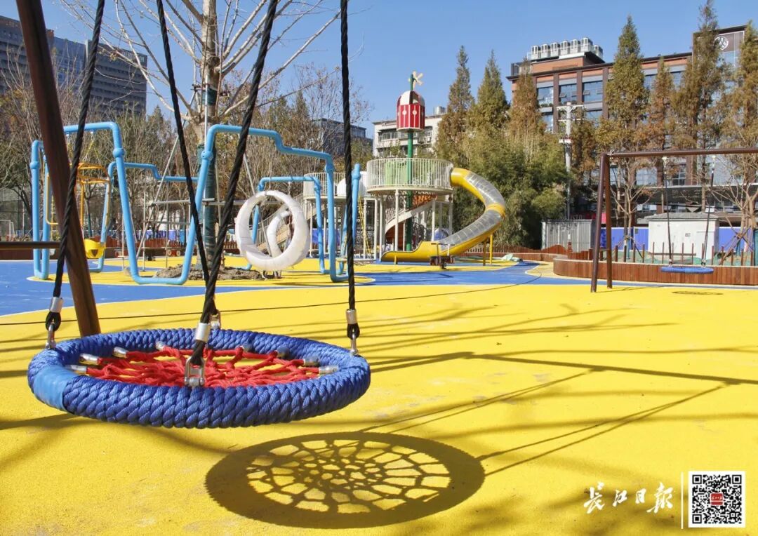 而在儿童游乐区,除了滑梯、跷跷板、攀爬架等传统设施,新增的“水幕秋千”将给市民带来新奇体验。秋千利用传感器捕捉使用者的体型、速度等信息,自动控制水流时机,实现“秋千水中过”的效果。