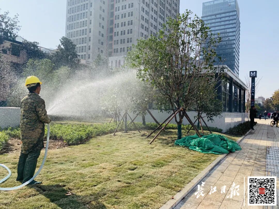 “我们还安排了移动洒水车,控制扬尘、浇灌绿植。”在建设二路站A口,一台洒水车正在浇水,工人给绿植浇完水后,顺便将马路上的一些泥土冲洗干净。“力争把对周边的影响减到最小,也希望市民朋友多理解。”现场负责人表示。