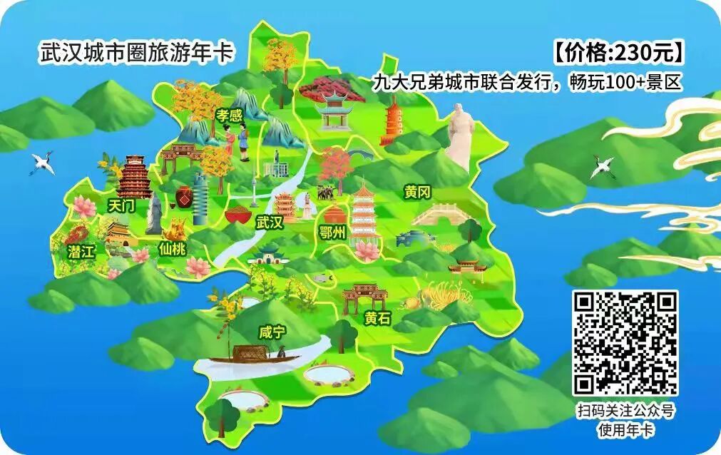 “武汉城市圈旅游年卡”在首届中国(武汉)文化旅游博览会上正式发布。即日起,购买“武汉城市圈旅游年卡”的游客,可畅游武汉、黄石、鄂州等武汉城市圈内9城100多家优质景点、场馆、游玩项目。