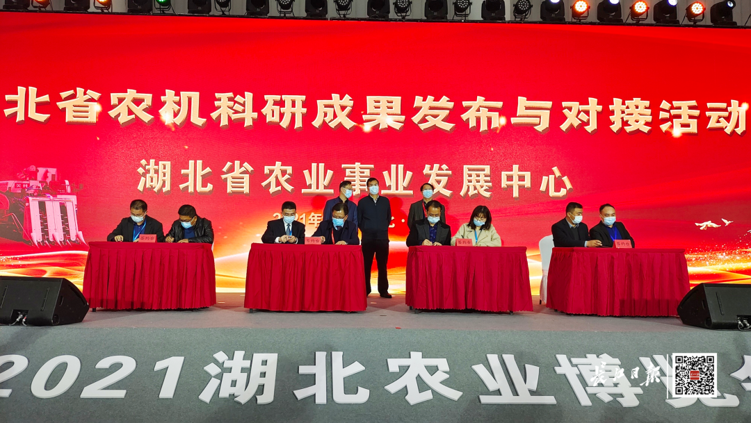 为加速农机科技成果转化,打造供需对接交流平台,11月28日在2021湖北农业博览会上,省农业发展中心举办了湖北省首届农机科研成果发布与对接活动,有24项科研成果达成合作意向,意向合作金额达1.1亿元。
