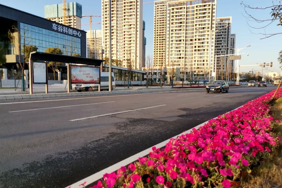 16号线枫林站道路两侧设置花坛。通讯员袁永华 摄