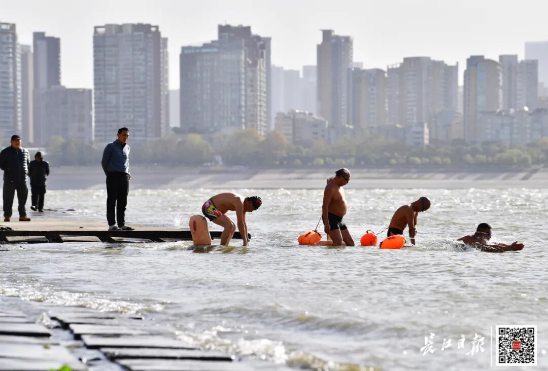 龙王庙汉江边的冬泳爱好者。记者李永刚 摄