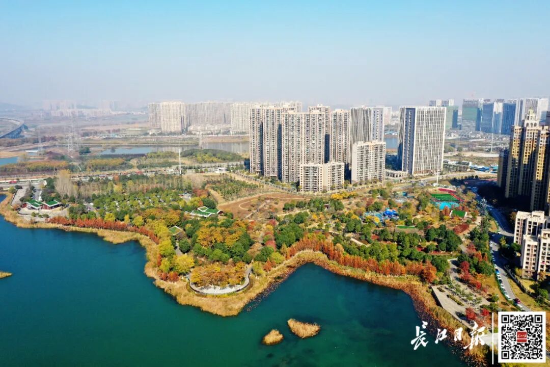 12月5日,蓝天白云,东西湖海洋极地公园层林尽染。记者金振强 摄