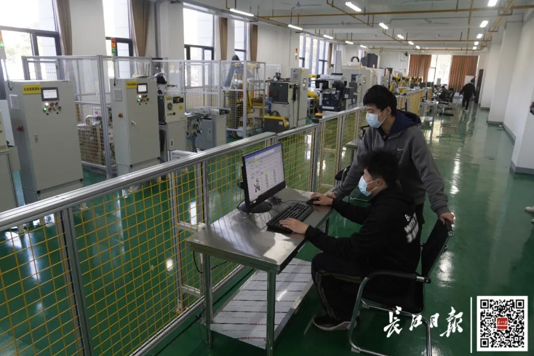 大学生在智能制造产线上进行学习研究。记者彭年 摄