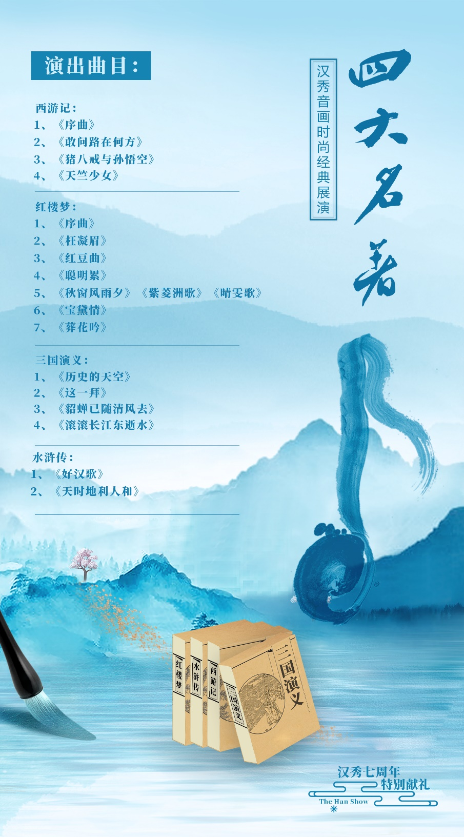 12月19日至20日,汉秀版《四大名著》音画时尚音乐会将在武汉万达汉秀剧场精彩亮相。武汉万达汉秀剧场与湖北省歌剧舞剧院强强联手,将《四大名著》经典影视曲目与汉秀剧场高科技舞台相融合,打造音画艺术盛宴。