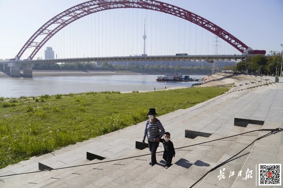汉阳江滩,市民在阳光下散步。记者彭年 摄