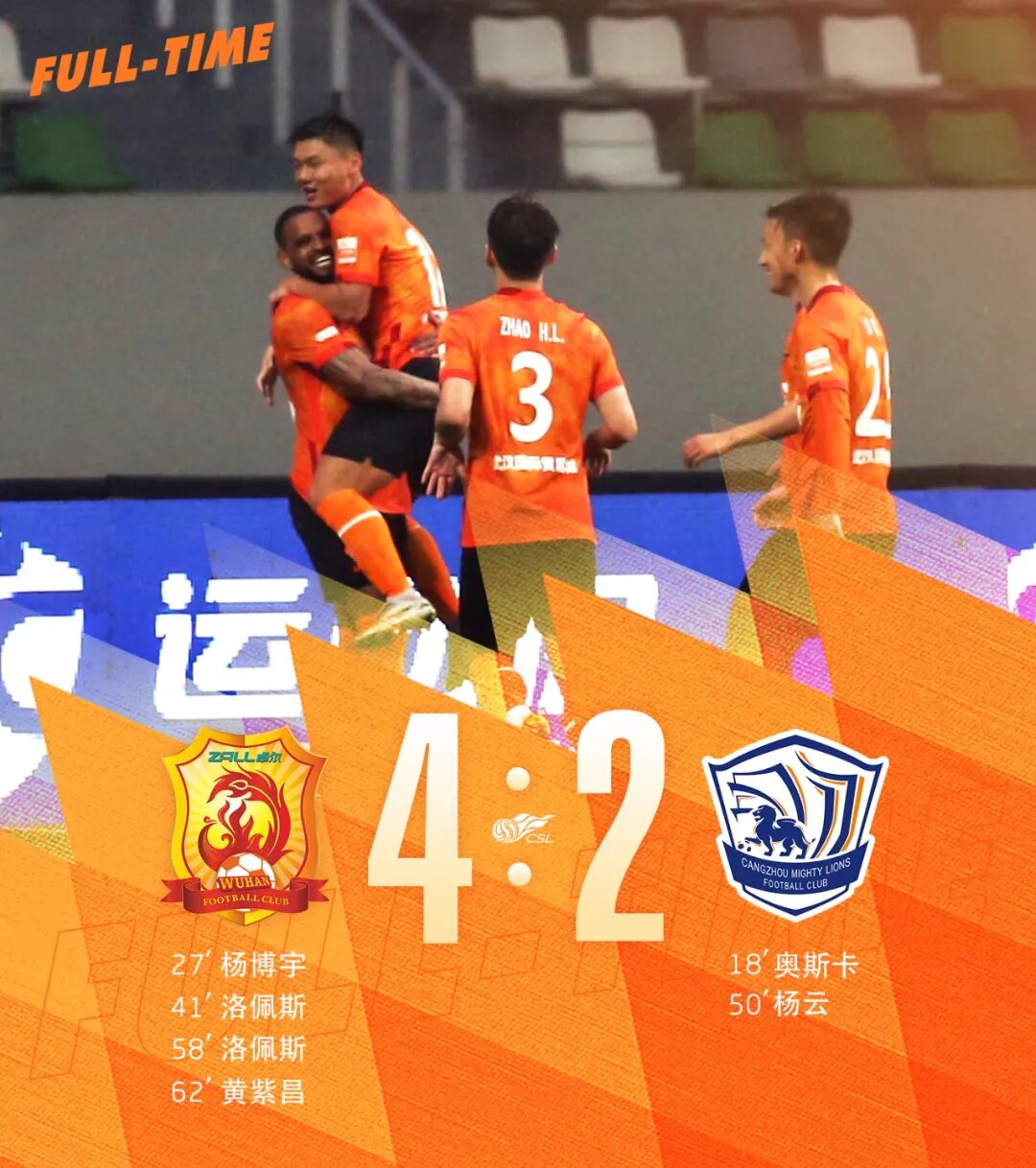 在12日下午重启的中超“保级组”首战中,新帅李金羽率领下的武汉队在先失一球的情况下奋起直追,最终4:2击败沧州雄狮,赢得了保级战的首场胜利。详见>>>