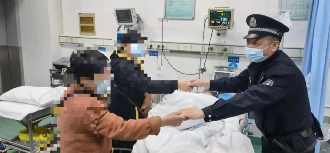 婆婆和子女拉着民警的手表示感谢。通讯员胡俊明 摄