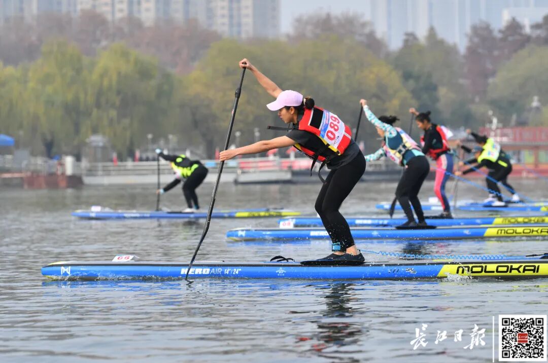 13日,2021年中国桨板俱乐部联赛总决赛暨全国U系列赛总决赛在东湖楚风园附近水域举行,这是武汉首次举办全国性桨板单项赛事。