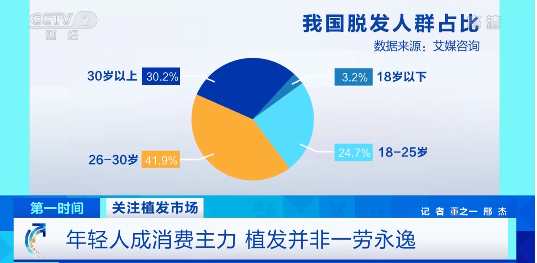 国家卫健委发布的数据显示,中国有超过2.5亿人正饱受脱发的困扰,平均每6人中就有1人脱发,大批90后也被脱发所困扰。而在目前的植发群体中,20到30岁的年轻人占据了一半以上。