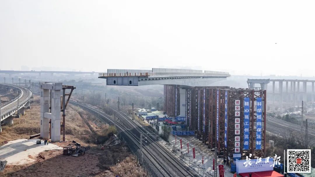 武大高速上跨京广线立交桥“六连转”首转“到位”