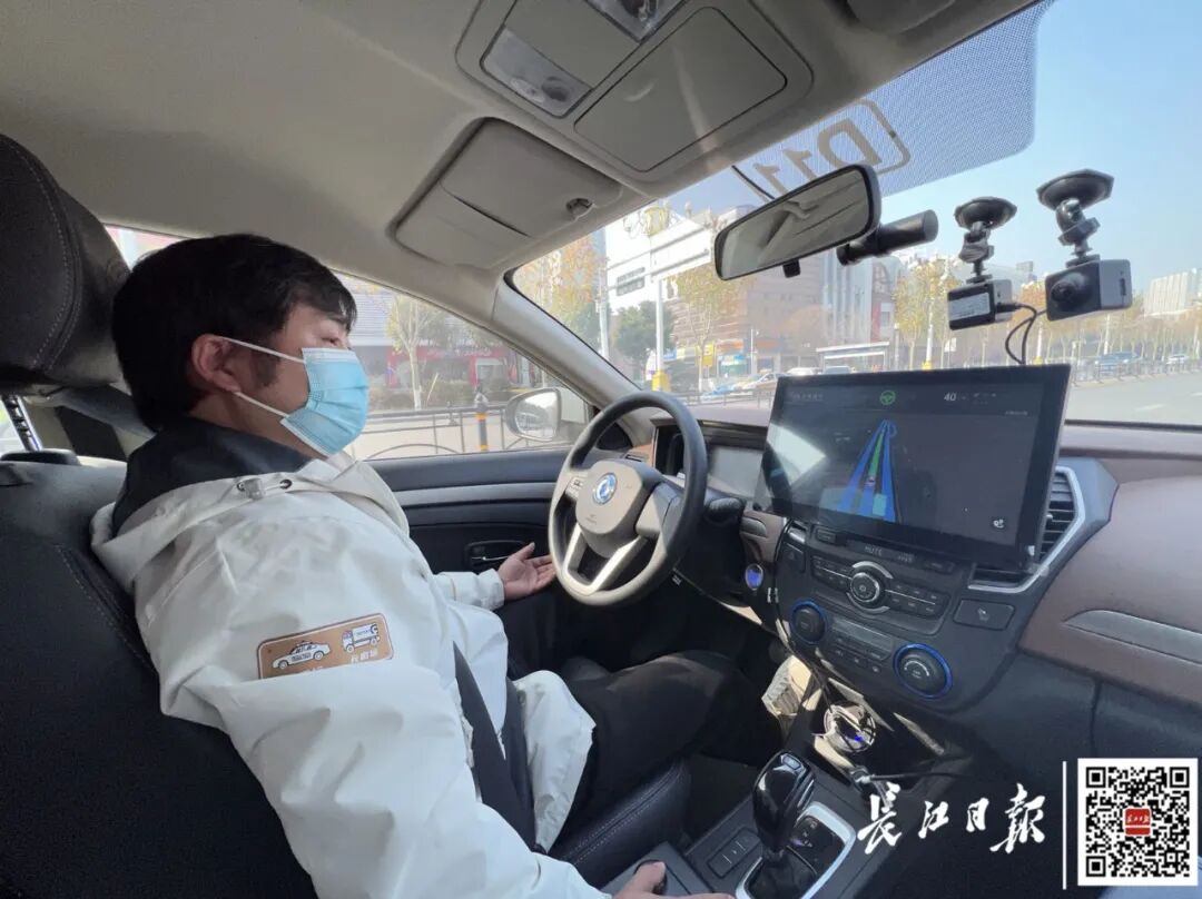 自动驾驶车辆行驶过程中。见习记者郝天娇 摄