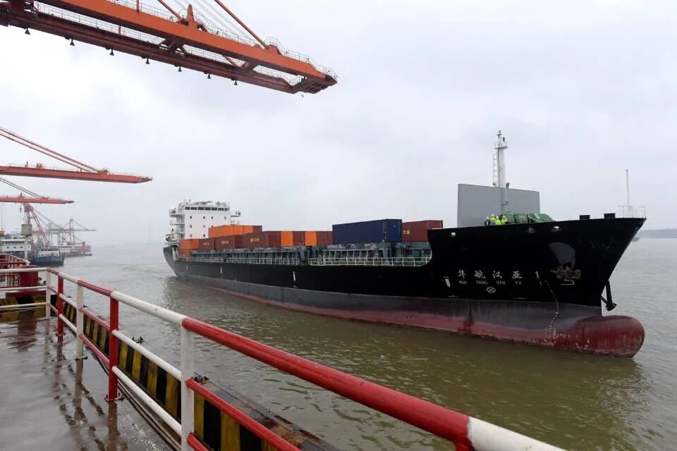 6日下午,阳逻一期码头,载满纺织品、医疗用品、化工品、石材及食品等290标箱的“华航汉亚1”轮离开阳逻港,开启了2022年的首个航程。该轮将前往韩国釜山和日本门司、大阪、名古屋等港口。