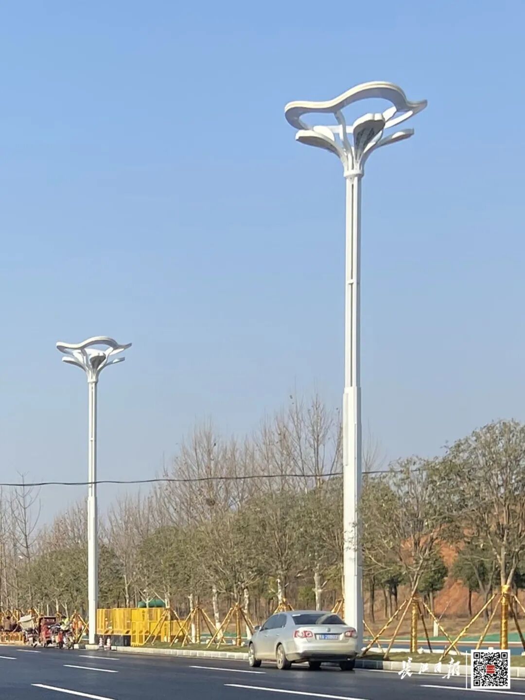 道排项目经理刘冲指着路边的花型路灯解释:“这个路灯可不一般,引进了华为先进科技,通过多杆合一,将交通信号灯、智慧监控、智慧喷雾、智慧照明、5G基站等十几项功能集聚于一身。”