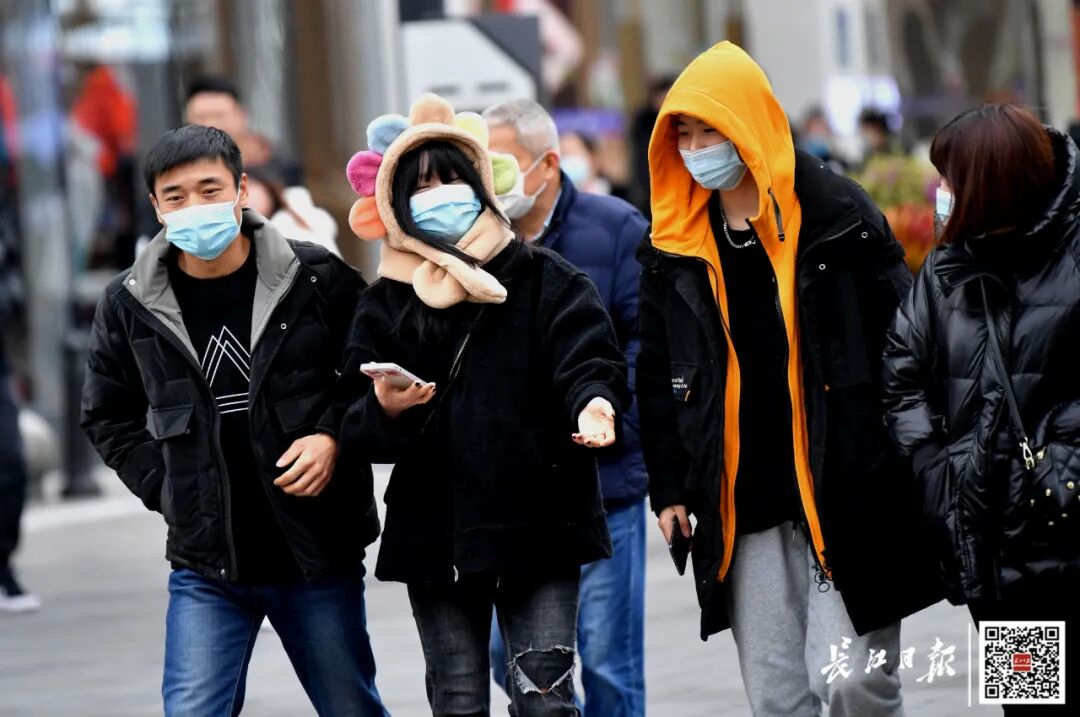 中山大道附近,穿着厚冬装的市民逛街购物。记者喻志勇 摄