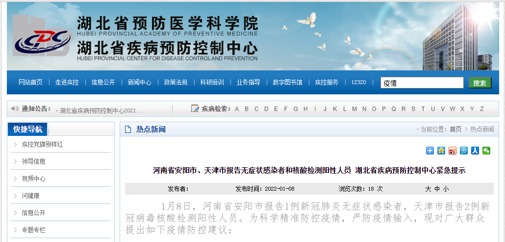 1月8日,河南省安阳市报告1例新冠肺炎无症状感染者,天津市报告2例新冠病毒核酸检测阳性人员。为科学精准防控疫情,严防疫情输入,现对广大群众提出如下疫情防控建议:
