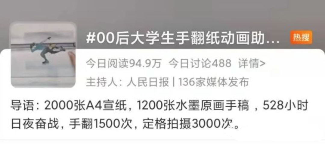2000张A4宣纸,1200张水墨原画手稿,528小时的日夜奋战,手翻1500次,定格拍摄3000次,一分多钟的短片背后,是苏梓凡及团队的辛苦付出。