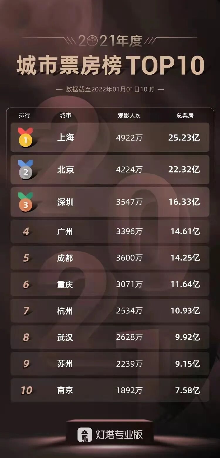 统计数据显示,2021年武汉人花了超过9.9亿元看电影,在全国各大城市中排名第八。全年共有超过2628万人次的武汉人走进电影院,约等于平均每个武汉人都看了两场电影。