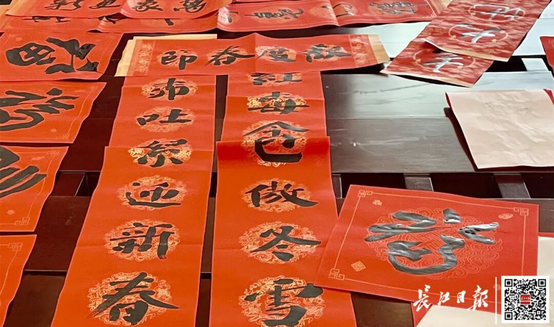 湖北省图书馆写春联送万“福”惠民活动现场。