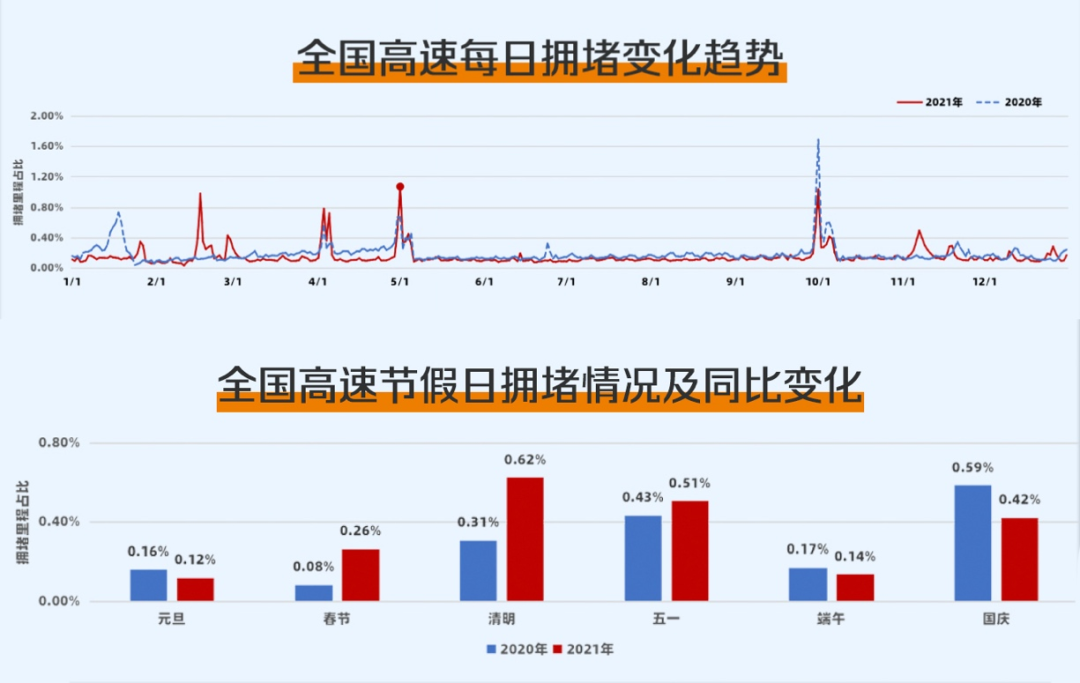 19日,高德地图联合国家信息中心大数据发展部、清华大学交通研究所等多家权威机构共同发布《2021年度中国主要城市交通分析报告》,报告显示,2021年全国高速拥堵同比下降19.3%,2021年5月1日当天全国高速拥堵程度最高,平日期间高速路况则整体平稳。