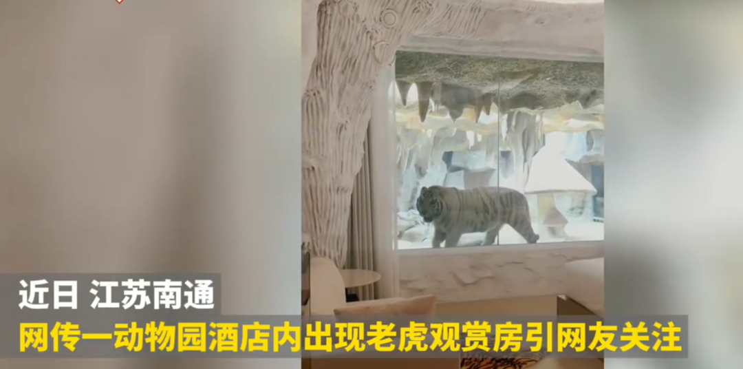 农历虎年即将到来,各行各业都在费尽心思“蹭热度”。近日,网传江苏南通一动物园酒店内出现老虎观赏房,引发网友热议。拍摄视频显示,在一个酒店房间里,窗户的透明玻璃外徘徊着一只老虎,一直游走在玻璃附近。南通市崇川区文旅局工作人员介绍,该体验项目相关手续齐全合规,不过暂未开放。20日,据北京青年报报道,当地文旅局已暂停“虎景房”的宣传和营业。