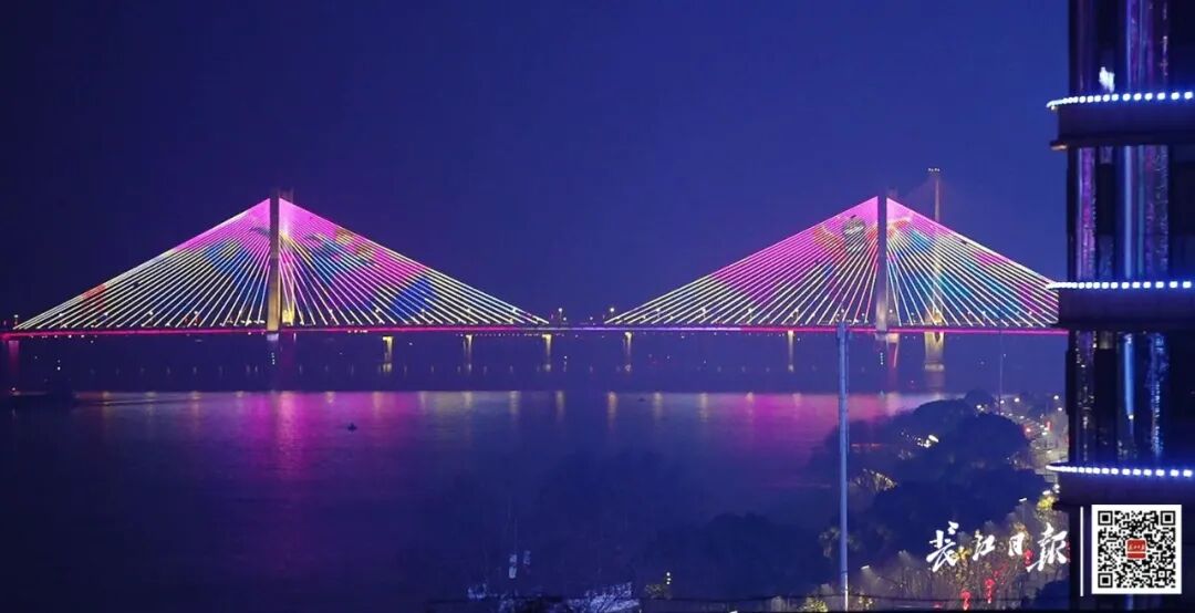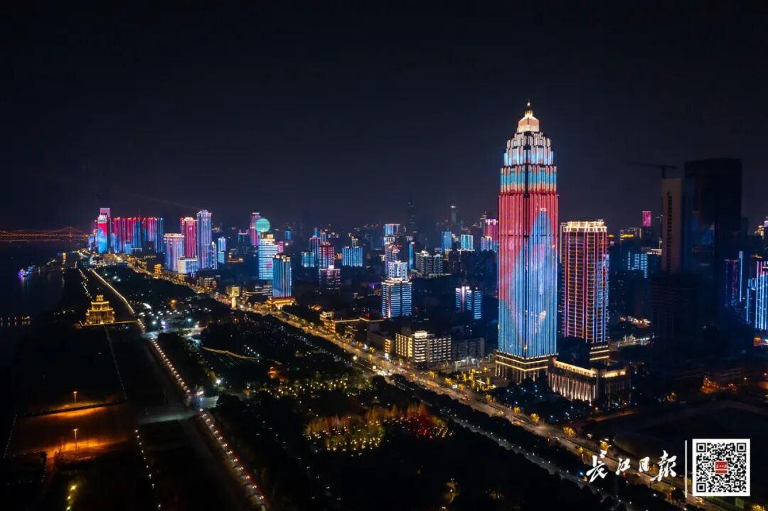 4日晚6时许,长江灯光秀如约而至,璀璨多姿的现代光影照亮江城之夜。