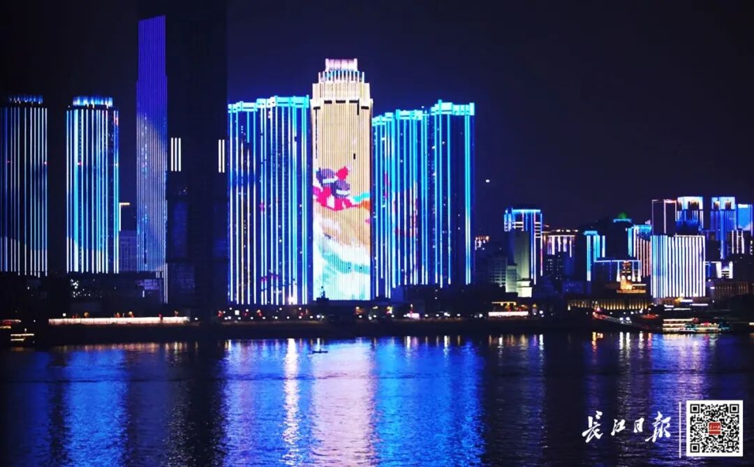 刹那间,两岸楼宇化身为长江之畔的“光影赛场”,让市民游客一睹冰雪运动的风采,为北京冬奥会加油助威。