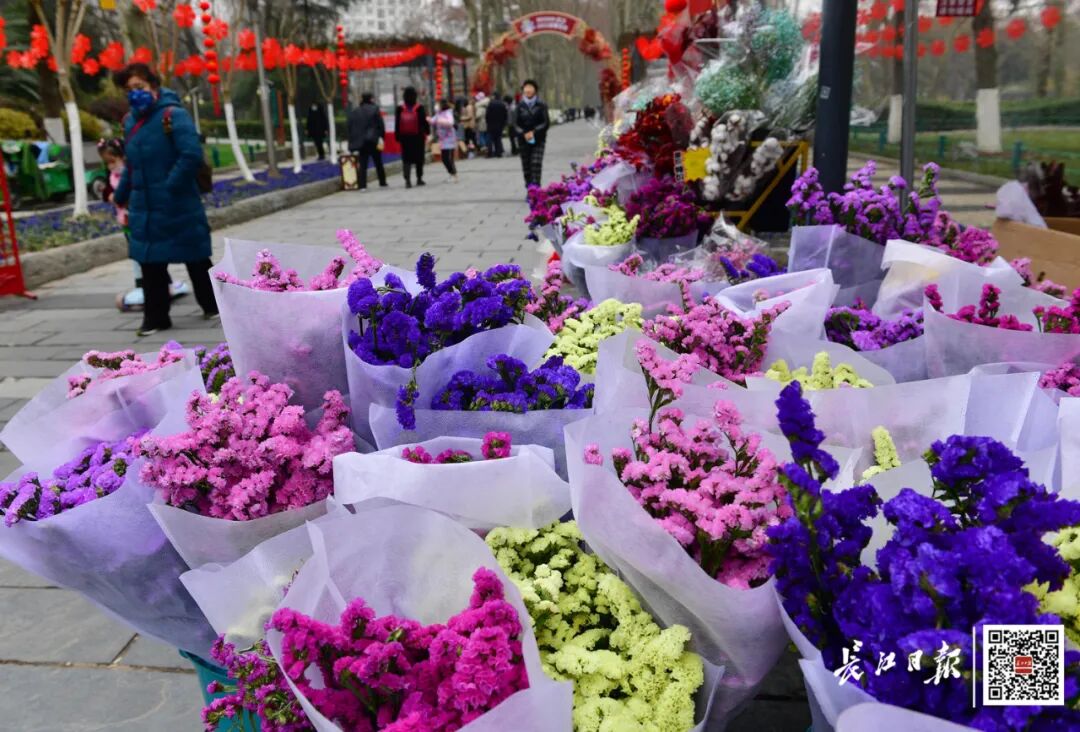 解放公园内,市民看花展、逛花市。记者李永刚 摄