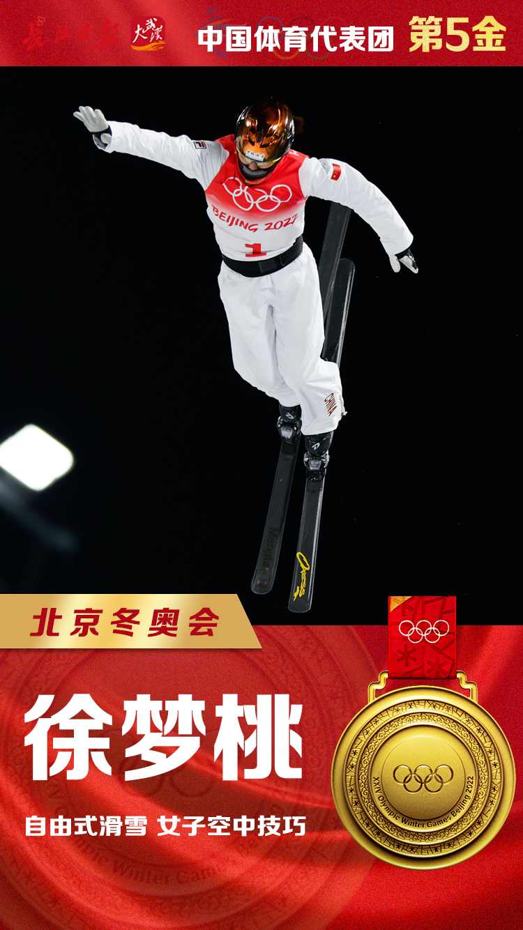 14日晚,中国选手徐梦桃夺得北京冬奥会自由式滑雪女子空中技巧金牌,这是中国代表团在本届冬奥会上获得的第五枚金牌,中国代表团的金牌数也由此追平了在2010年温哥华冬奥会创造的历史最佳战绩。