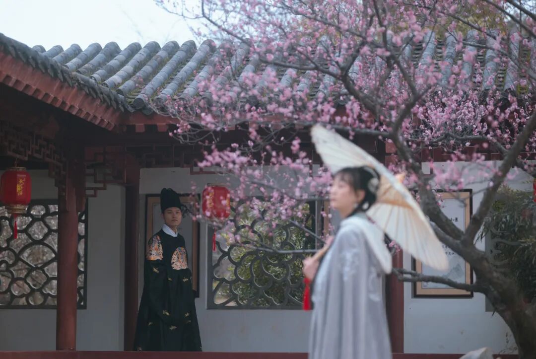 东湖梅园花开八成,19日,50多位汉服爱好者相约梅花林,寻香觅春。除了汉服巡游,梅园还特意推出了投壶、拔河、捶丸等一系列古代体育运动,市民游客组队竞技,沉浸式体验“穿越”的游戏感觉。