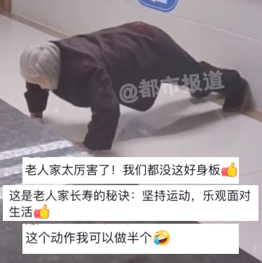 近日,湖南湘潭。一位78岁的奶奶在医院照顾生病的老伴,陪护间隙在走廊上做起俯卧撑,而且一连做了好几个。据拍摄者介绍说,这位老人每天早上都会锻炼身体,有开合跳、拳击、俯卧撑……网友感叹:老人家太自律了!