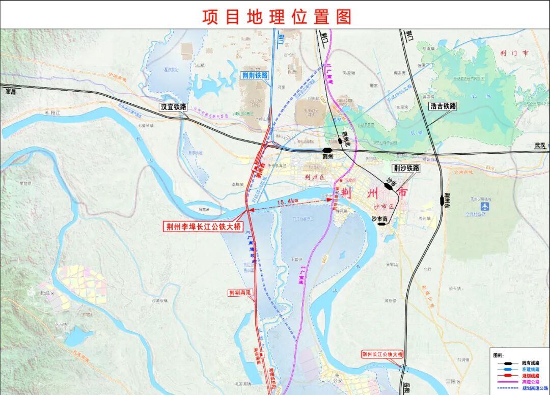 据了解,荆州李埠长江公铁大桥由湖北省交投联合体投资建设,中铁大桥院勘测设计,路线整体呈南北走向,距既有荆州长江公路大桥上游15.4公里处,承担二连浩特—广州高速公路改线、荆荆铁路南延及城市道路的综合交通功能。该项目被纳入《湖北省综合交通运输“十三五”发展规划纲要中期评估报告》重点项目,已列入国家发改委《长江干线过江通道布局规划(2020-2035年)》。