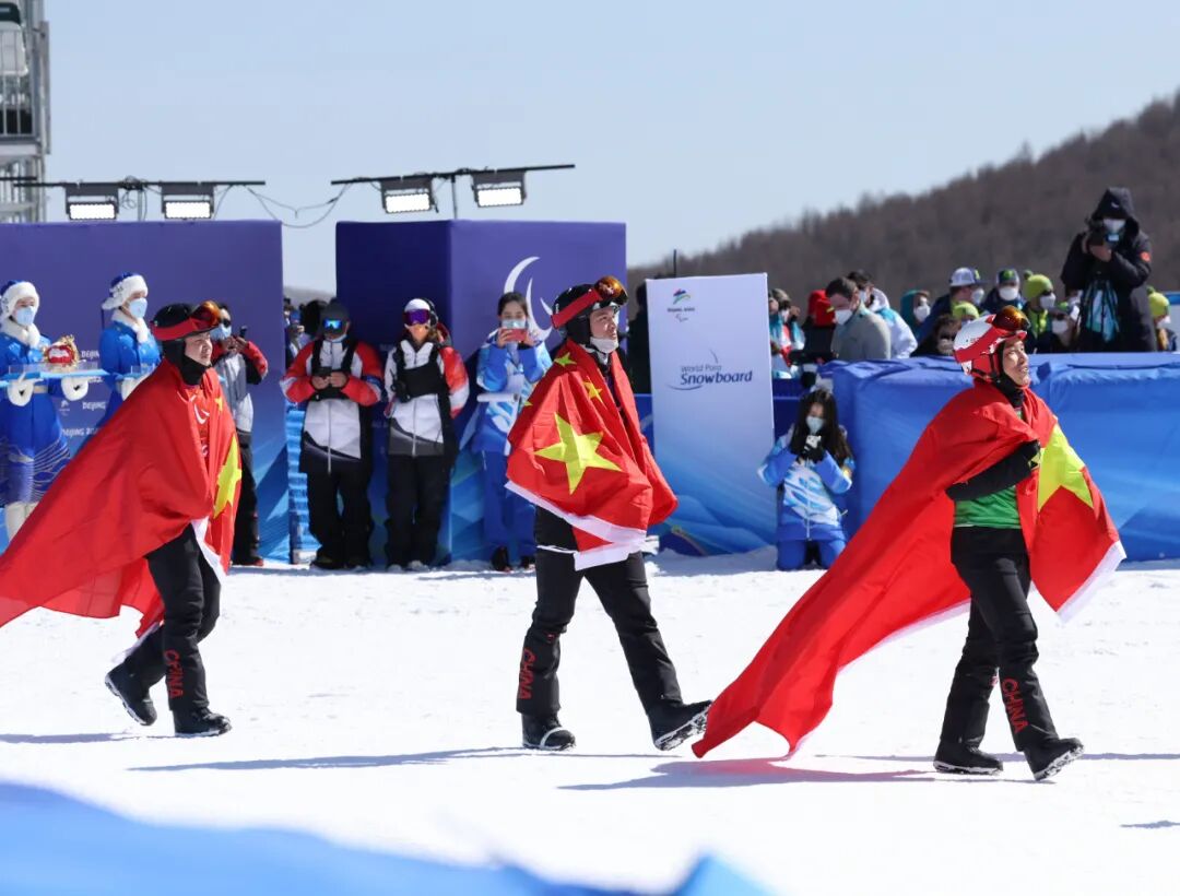 7日,北京冬残奥会单板滑雪障碍追逐比赛中,中国选手纪立家、王鹏耀、朱永钢包揽了男子障碍追逐UL级比赛金银铜牌,武中伟在男子障碍追逐LL1级比赛中获得铜牌,实现了中国队在冬残奥会该项目上奖牌“零”的突破。