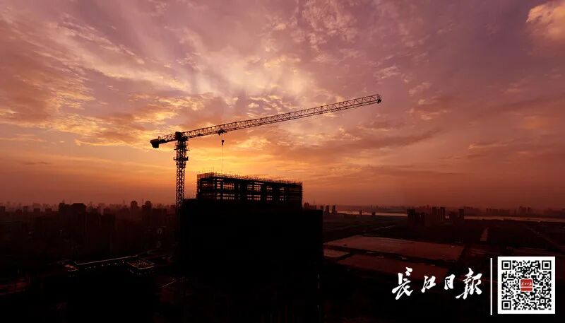 凌晨5时,霞光冲破云层。位于东西湖区的顺丰武汉电商产业园项目工地,塔吊司机黄永生迎着朝阳,爬上40多米高的塔吊。从驾驶室窗口往外看,一架飞机正穿过缓缓上升的旭日。
