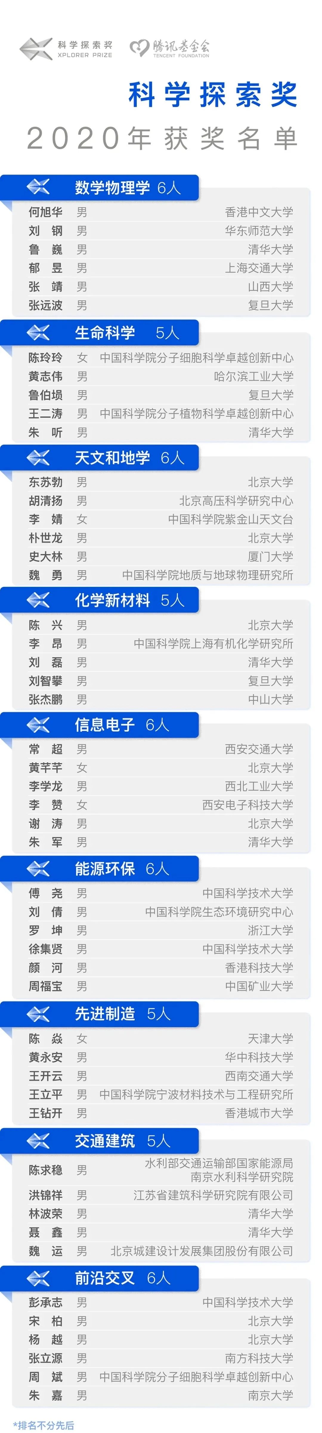 作为国内首个由互联网企业设立的科技公益项目,“科学探索奖”于2018年由马化腾携手饶毅、杨振宁、施一公、潘建伟等知名科学家共同发起。奖项面向基础科学和前沿技术领域,支持在中国内地和港澳地区全职工作的、45周岁及以下青年科技工作者,每年评选产生50位获奖人。