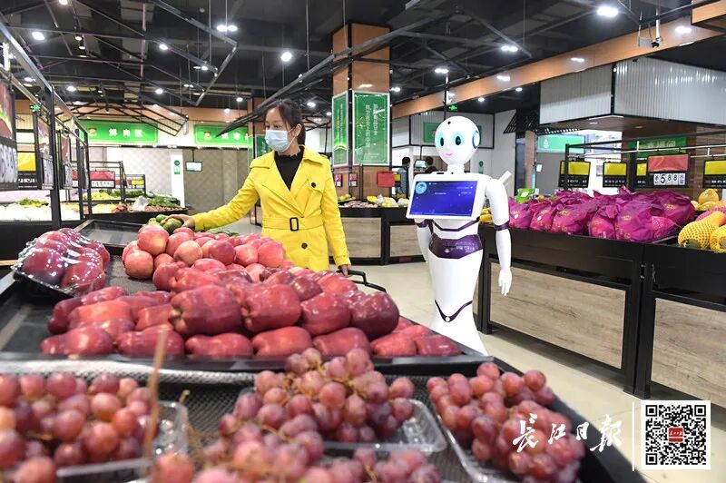 黄陂区木兰斗笠哥智慧农贸超市,机器人助阵市民买菜。记者刘斌 摄