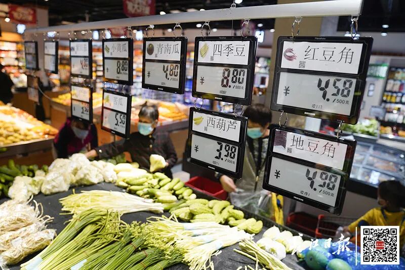 洪山区创亿农生鲜市场的电子价签可以随时调价。记者彭年 摄