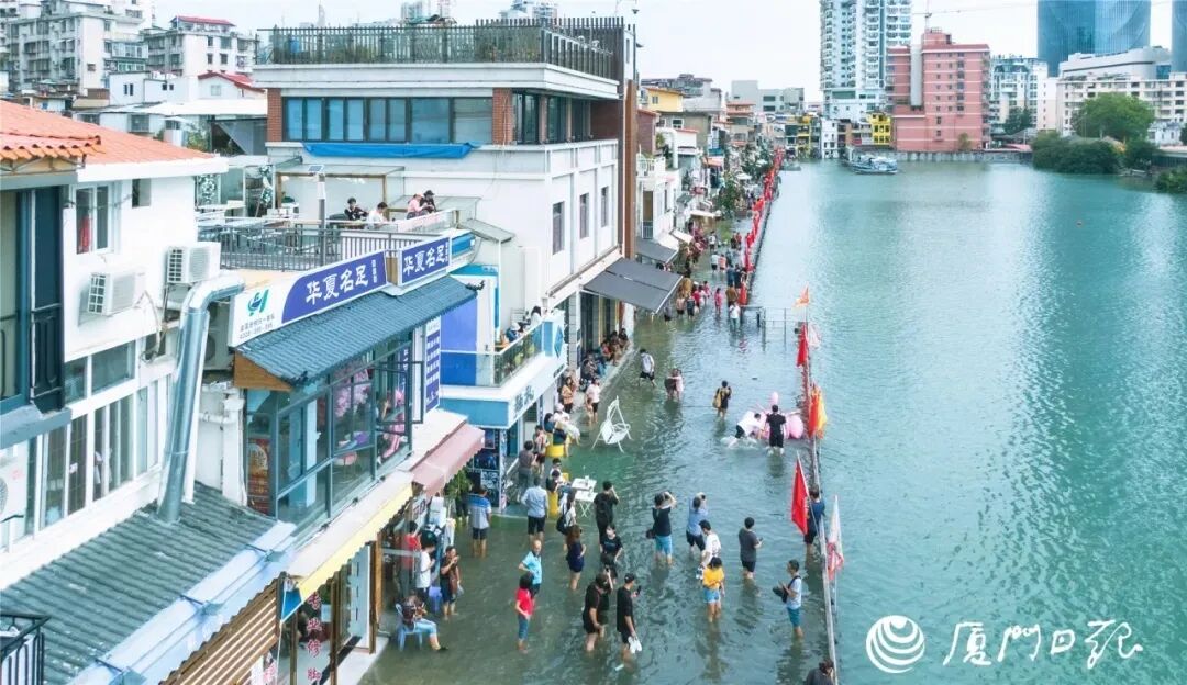 ◇ 19日,厦门海域迎来天文大潮,沙坡尾街区海水倒灌,秒变东方“威尼斯”。