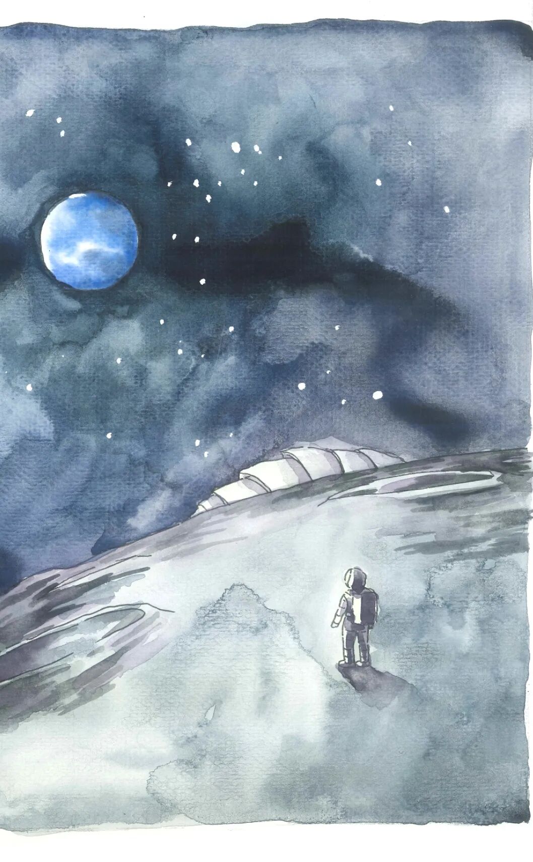 旅行者在月球回望地球(科幻小说 《月球旅店》封面),受访者供图
