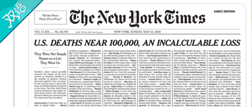 震撼!《纽约时报》用整个头版列出1000名死者信息:他们曾是我们