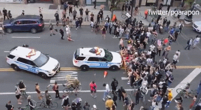 纽约警车冲向示威人群!纽约市长:不怪警察,抗议者不该威胁警察