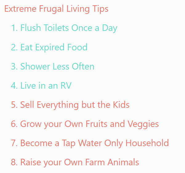 另外,某网站给出的“极度节俭”9个方案中有些已经超出理解范围了。