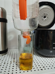 有人把食用油省的一点底用小瓶子全部接起来,继续用,不能浪费,还写了一首诗。