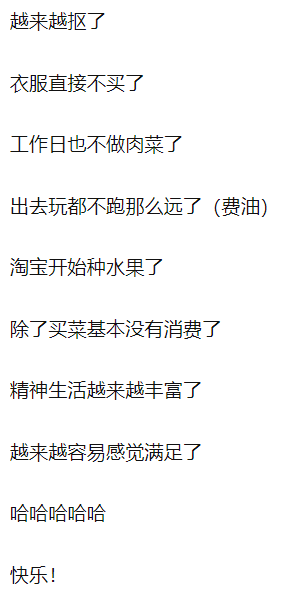 不买衣服,少做肉菜,水果自己种 = 精神生活极大丰富。