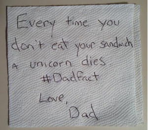 Every time you don’t eat your sandwich, a unicorn dies. #DadFact# Love, Dad.