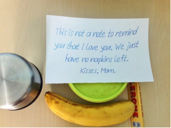 This is not a note to remind you that I love you. We just have no napkins left. Kisses, Mom.