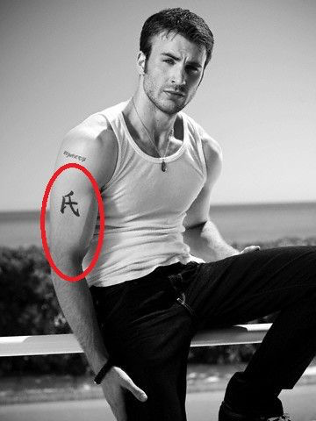美国队长也不掉队,在大臂上文了个“氏”。